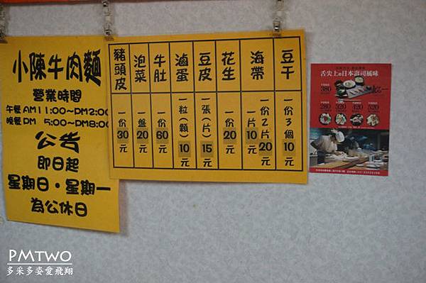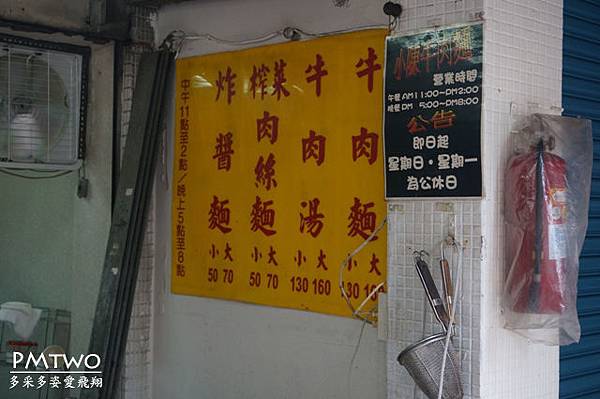 <小陳牛肉麵> 營業時間跟小菜價錢都十分清楚的寫在牆上菜單